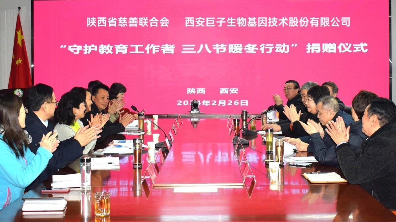2月26日,由巨子生物携手陕西省慈善联合会共同开展的“守护教育工作者 三八节暖冬行动”捐赠仪式圆满举办。陕西省慈善联合会会长薛引娥、陕西省慈善联合会党支部书记兼副会长郭志英、陕西省慈善联合会副会长张民安、陕西省慈善联合会副秘书长吴朝辉、陕西省慈善联合会项目部副部长杨荟茹、巨子生物高级副总裁叶娟等出席了本次捐赠仪式。